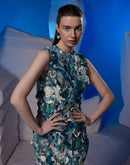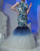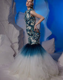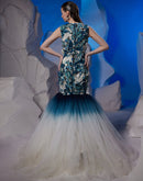 Elegant ivory gown with a blue ombre ghera, beautifully enhanced with 3D handwork and Zardozi embroidery.