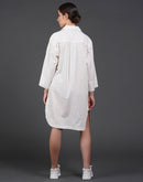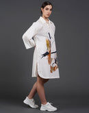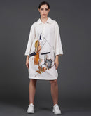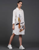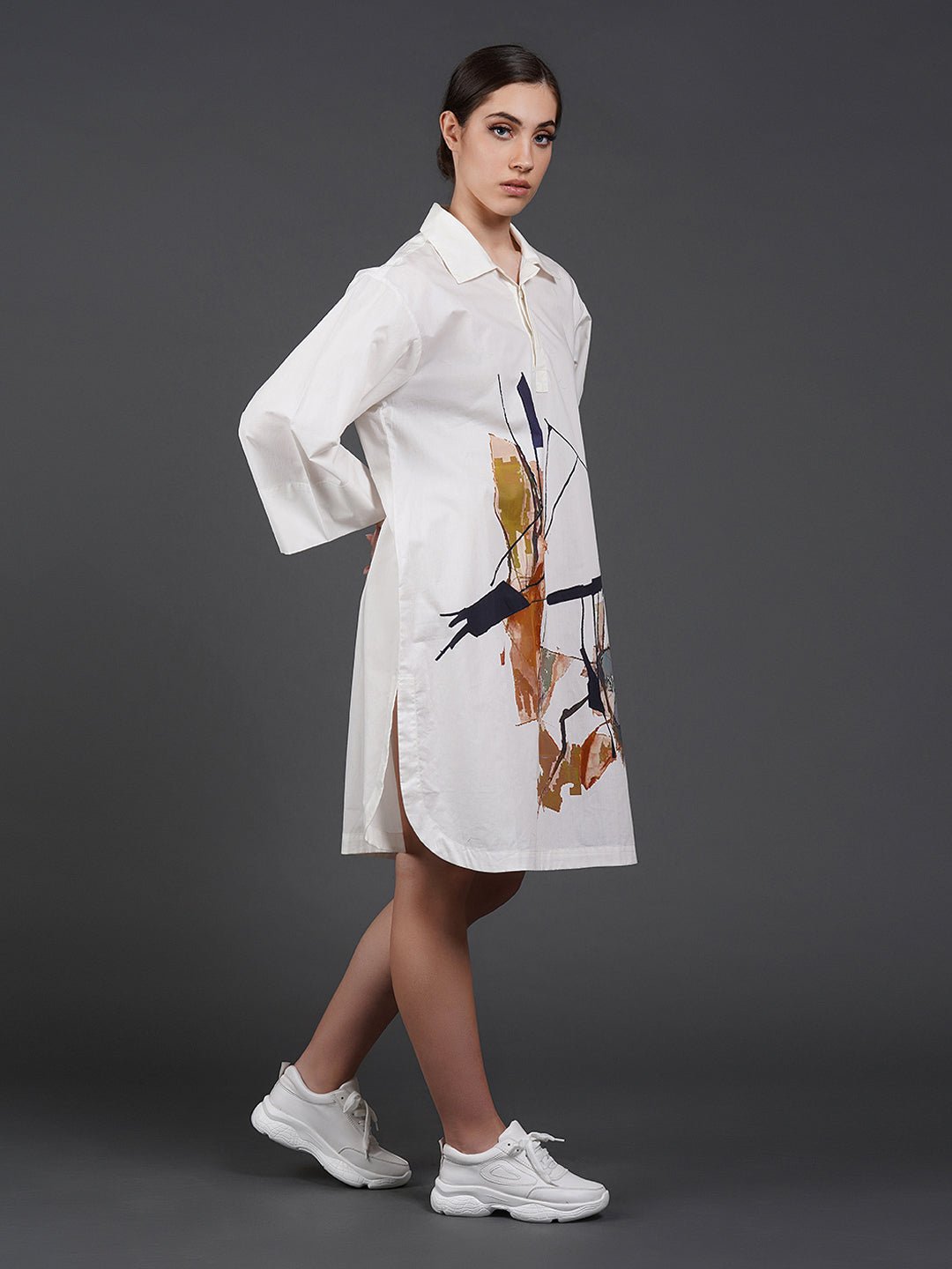 White cotton kurta showcasing abstract digital print in the front. – samantchauhan