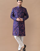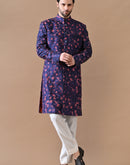 A statement sherwani set crafted in richly silk thread embroidery, featuring intricate all-over floral embroidery that brings a bold yet refined character to occasion wear.
