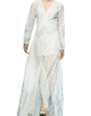 Ivory front-opening embroidered organza jacket gown with inner slip.Color: IvoryFabric: OrganzaCare Instructions: Dry Clean Only.