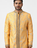 Golden Yellow Zari Embroidered Sherwani