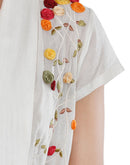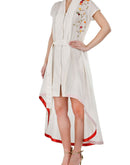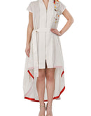 Ivory cotton silk, robe style front tie-up, high-low dress beautified with thread work.