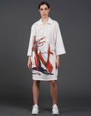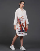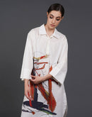 White cotton kurta showcasing abstract digital print in the front. – samantchauhan