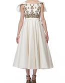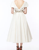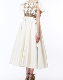Modified cape sleeves fit & flare calf-length Ivory Cotton Silk Dress, embroidered in zari work.