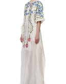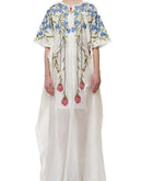 Ivory relax fit floor-length front-opening Cotton Silk Kaftan, embroidered in silk & zari yarn.