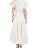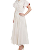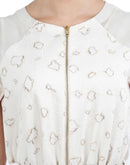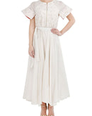Ivory burnt effect yoke front zipper opening tie-up Cotton Silk Dress.