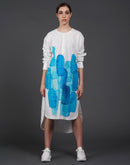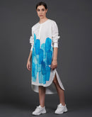 White cotton kurta showcasing abstract digital print in the front. – samantchauhan