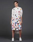 White cotton kurta showcasing abstract digital print in the front. – samantchauhan