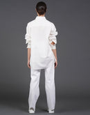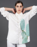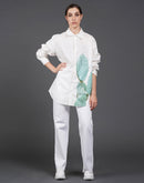 - White cotton shirt showcasing abstract digital print in the front.