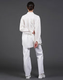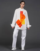 White cotton shirt showcasing abstract digital print in the front. Color: WhiteFabric: Cotton Set of: 1Care Instructions: Dry Clean & cold water machine wash DELIVERY TIME: 3 WEEKS