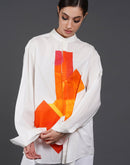 White cotton shirt showcasing abstract digital print in the front. – samantchauhan
