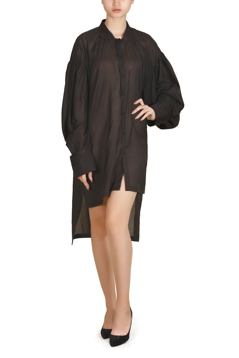 Featuring a Black gathered sleeve detail asymmetric hemling Dress.Color: BlackFabric: Cotton ViscoseCare Instructions: Dry Clean Only.