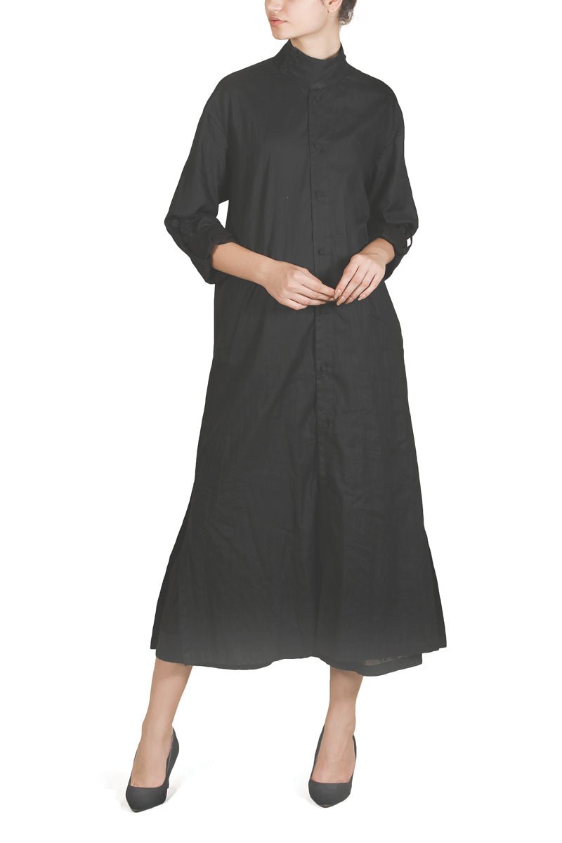 Featuring a Black high buttoned mandarin-collar Dress with front button-down & roll-up sleeves detailing.Color: BlackFabric: Linen CottonCare Instructions: Dry Clean Only.