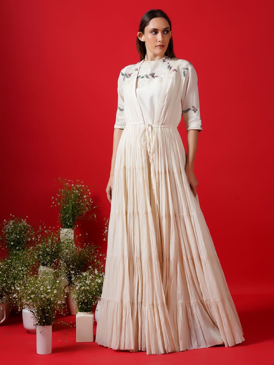 Jacket style kurta with cotton inner dress, embroidered on both front and back