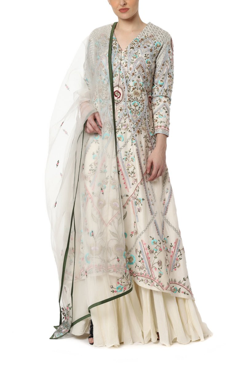 Ivory organza silk kurta, elegantly enhanced with appliqué and silk thread embroidery