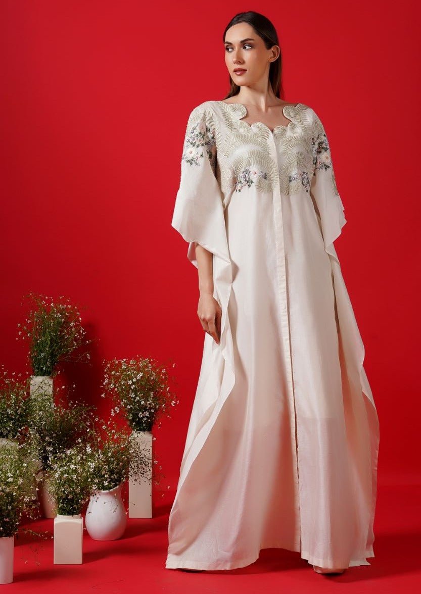 Organza kaftan with cotton silk slip inner, embroidered with 3D applique work