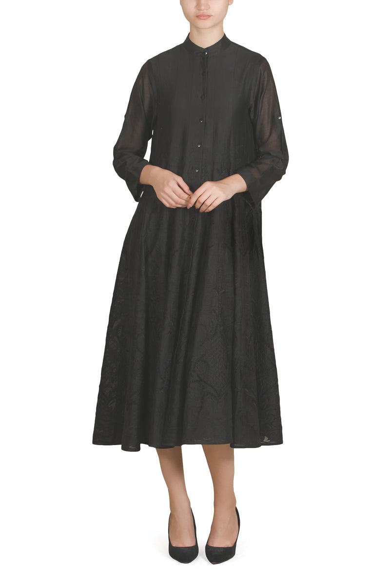 Featuring a Black kali paneled Dress with front placket detailing.Color: BlackFabric: Cotton ViscoseCare Instructions: Dry Clean Only.