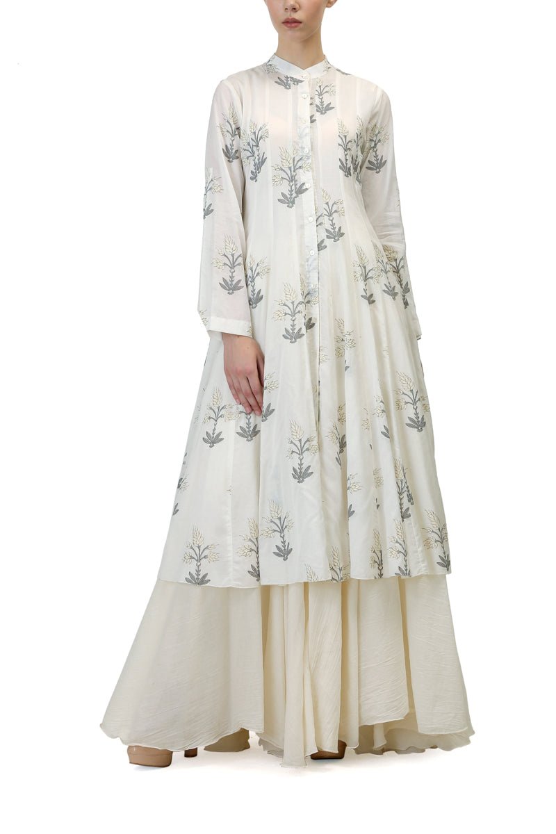 Featuring an ivory block printed kalidar kurta with a cotton inner slip dress.Color: IvoryFabric: Cotton SilkCare Instructions: Dry Clean Only.