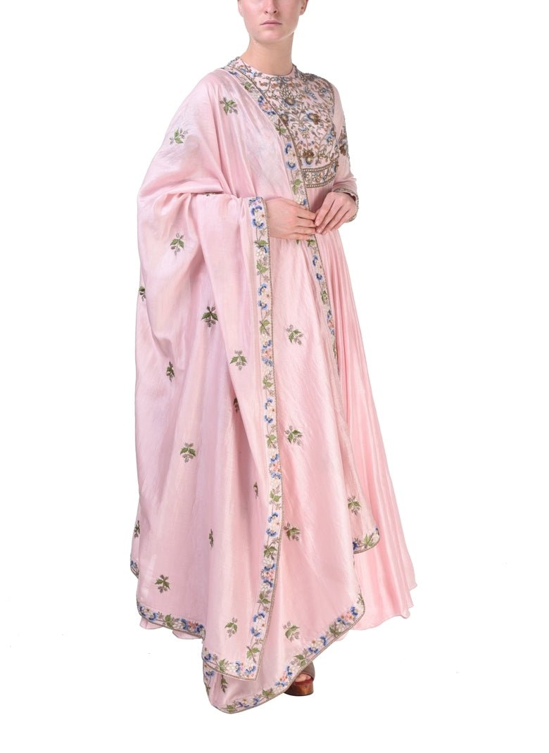Featuring a pale pink paneled anarkali kurta & dupatta with silk yarn, zari, sequins & beads embroidery.Color: Pale PinkFabric: ChanderiCare Instructions: Dry Clean Only.