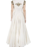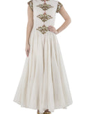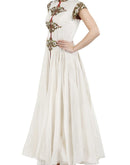 Ivory fit & flare floor-length Cotton Silk Dress, embroidered inrtricately in zari work & silk yarn.