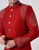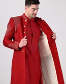 Maroon Classic Sherwani With Tonal Thread Embroidery