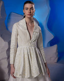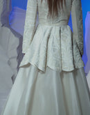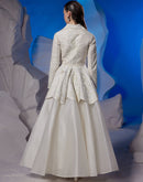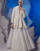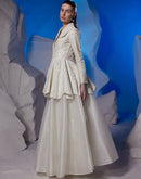 Organza skirt with peplum lapel neckline cotton silk top enhanced with dori,silk thread & bead work