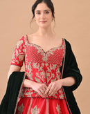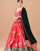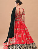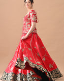 Red Classic Gold Embroidery Lehenga with Deep Green Dupatta