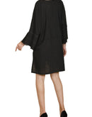 Featuring a Black frayed sleeves Dress with yoke & side-slit detailing.