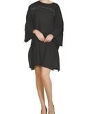 Featuring a Black frayed sleeves Dress with yoke & side-slit detailing.Color: BlackFabric: Linen CottonCare Instructions: Dry Clean Only.